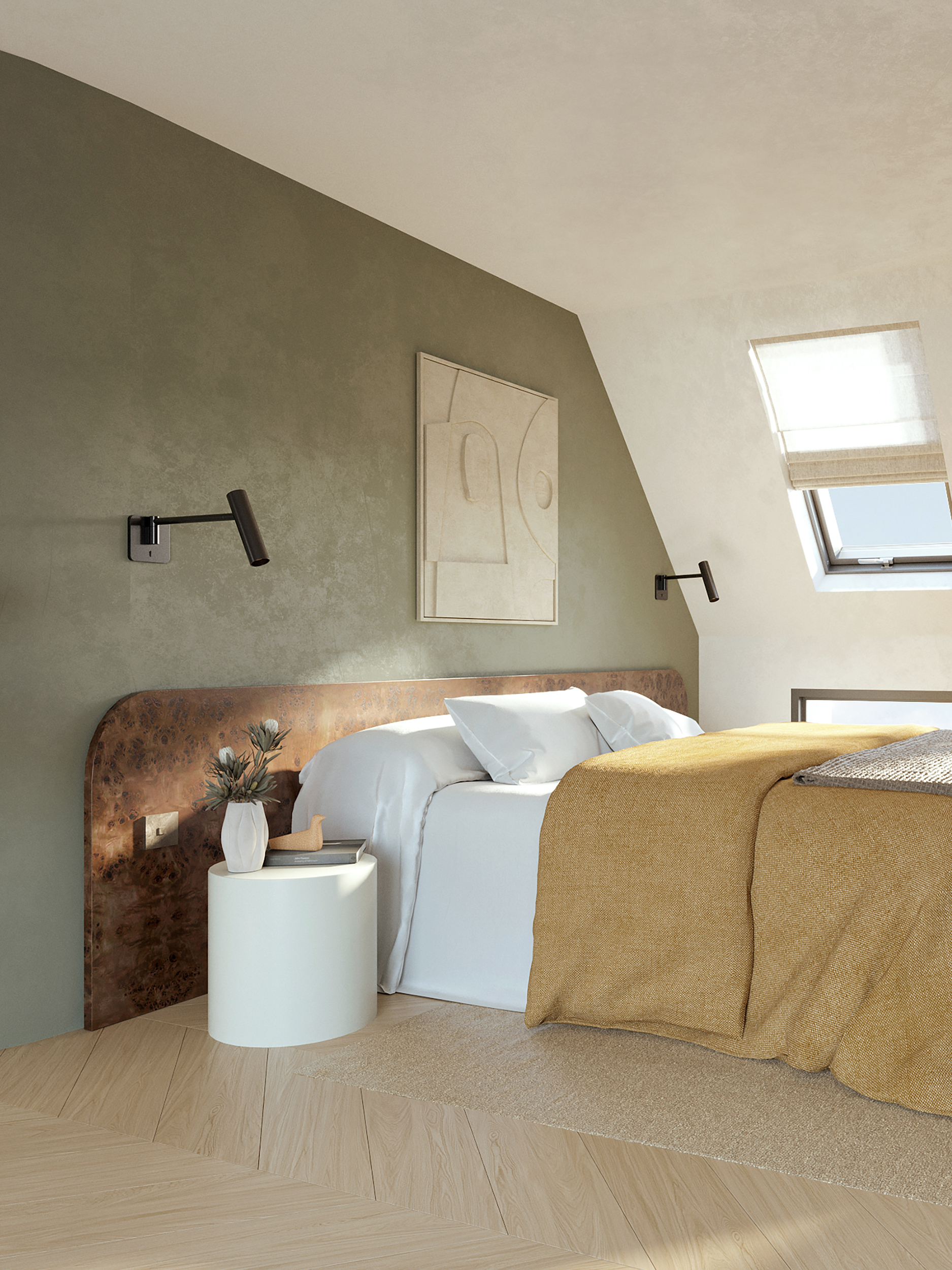 Design concept for the second apartment is a full transformation of a rooftop into a luxurious, high-end penthouse. We envisioned a space that seamlessly blends modern elegance with practical living, turning a once-complex area into a comfortable, refined living space.